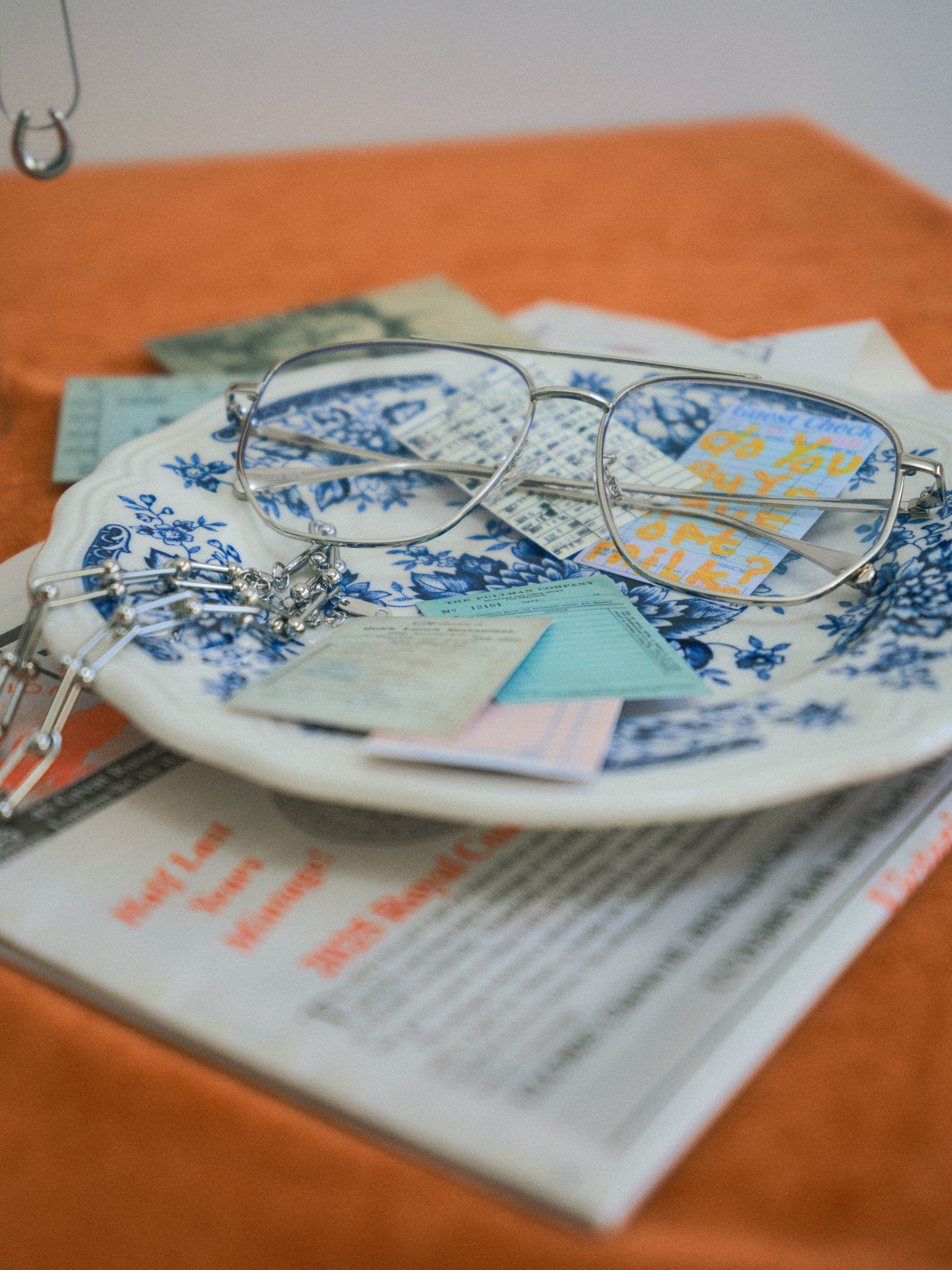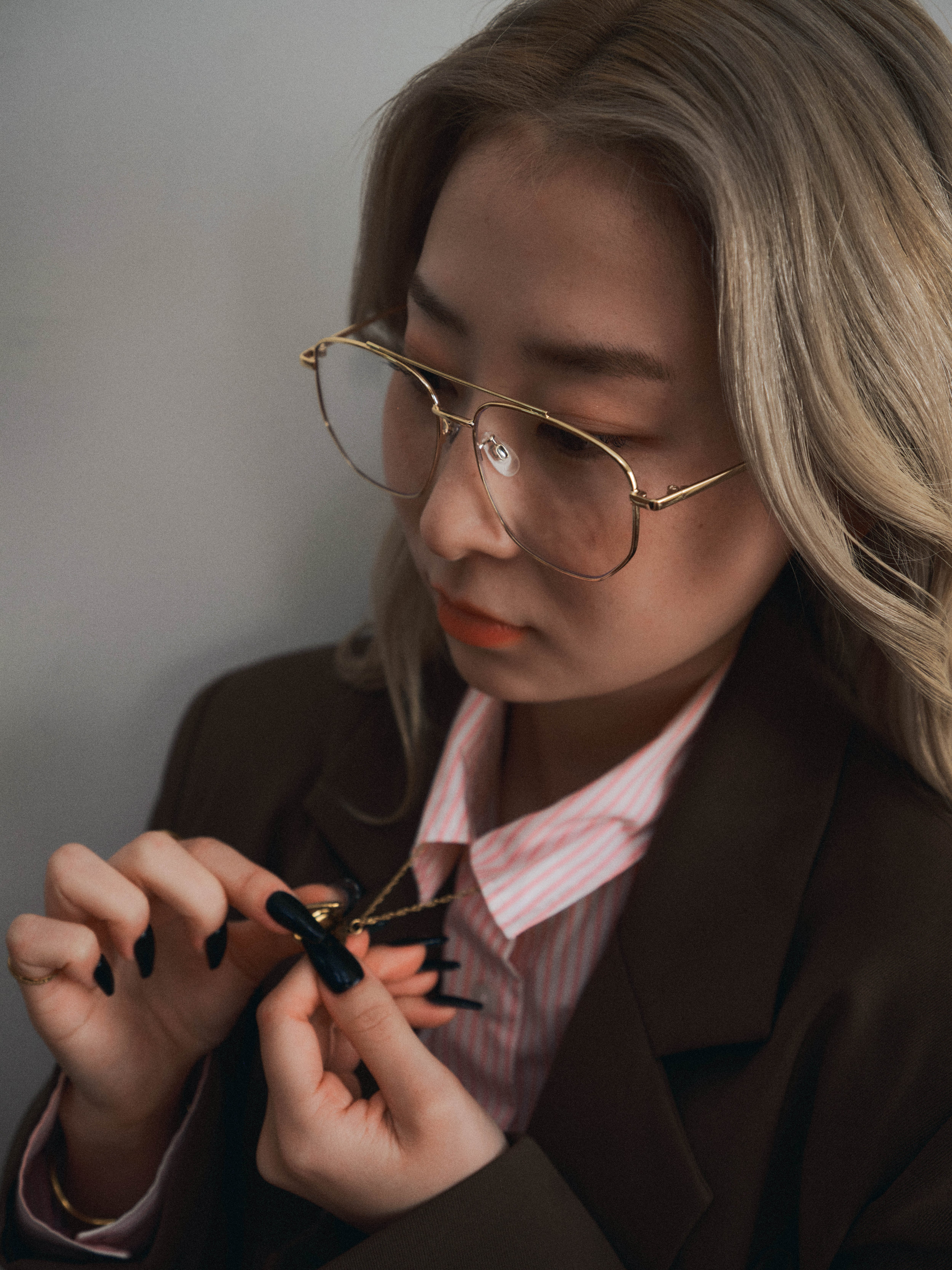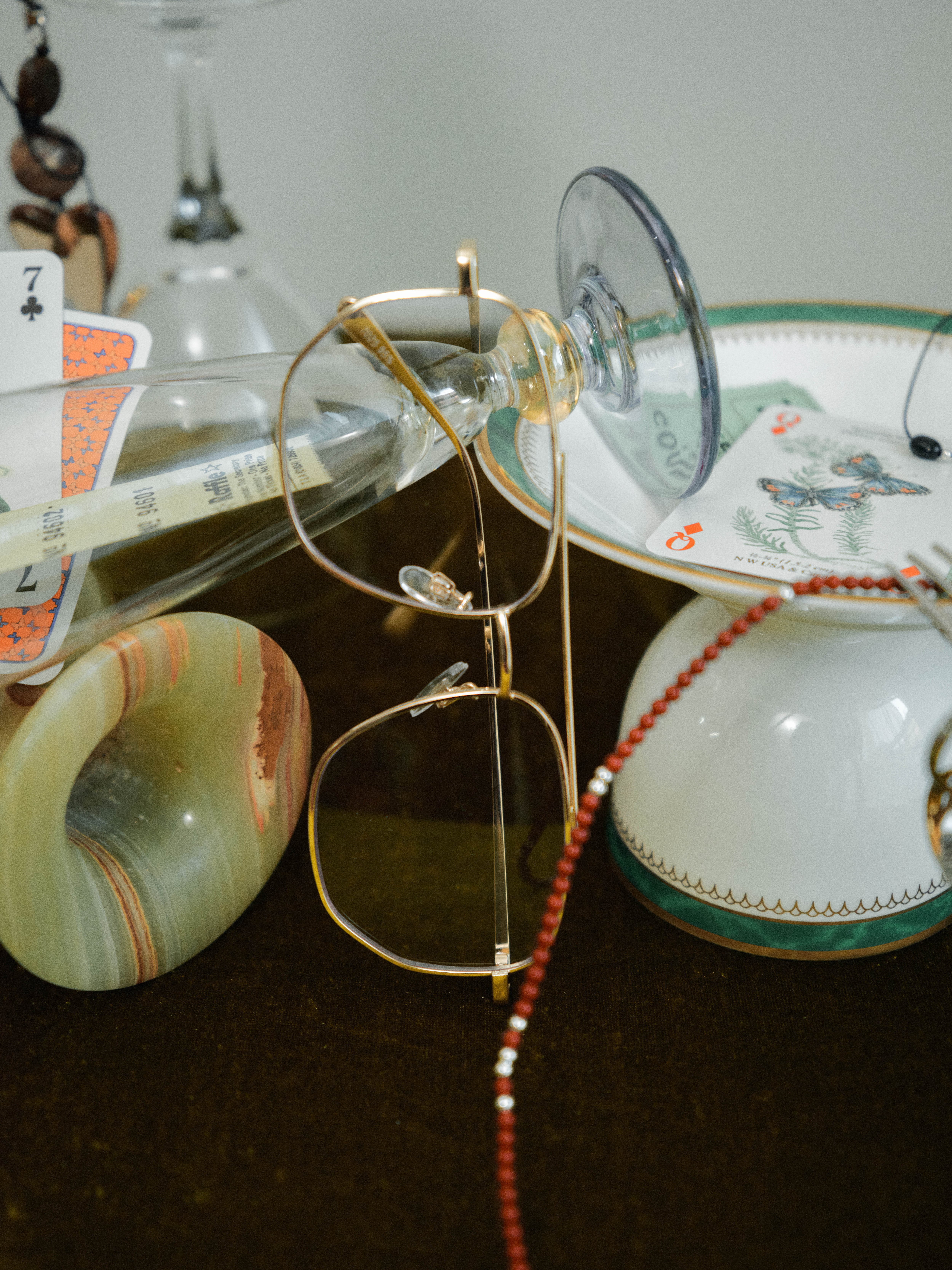 クラシックなフォルムに、華奢なメタルフレームを合わせることで、