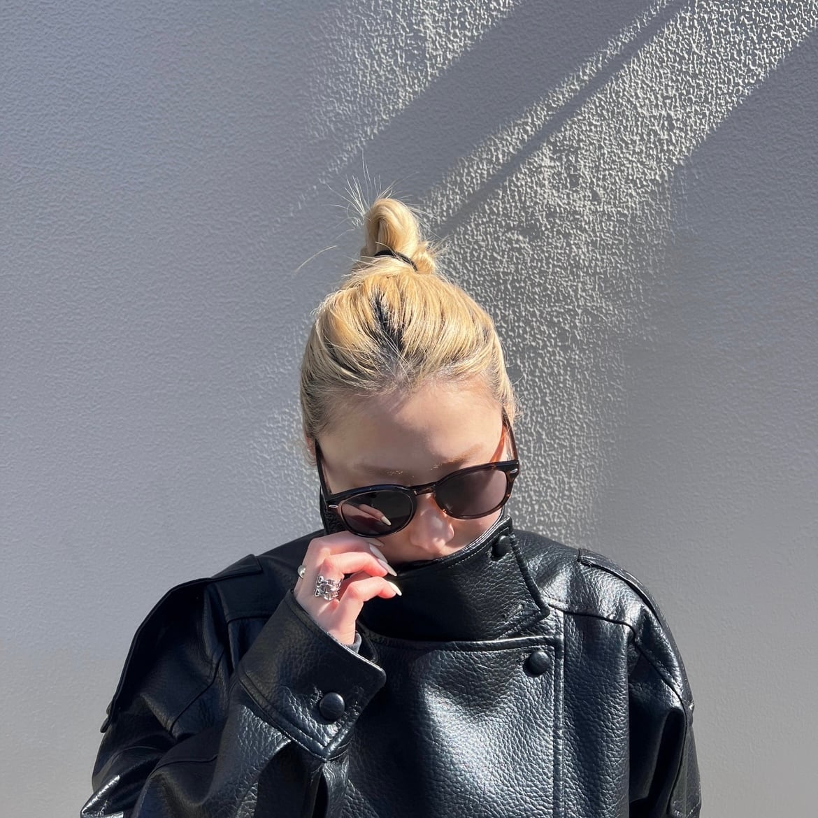 紫外線量に応じてレンズカラーが変化する調光レンズを採用したサングラス。