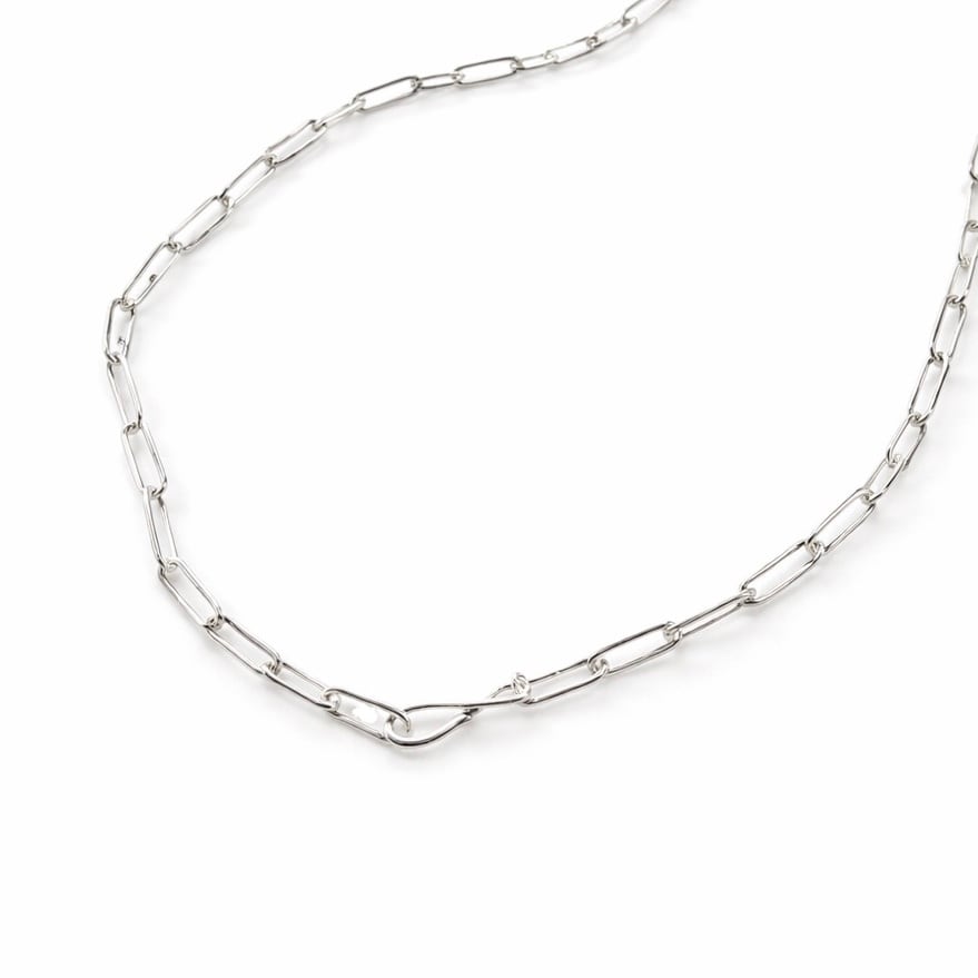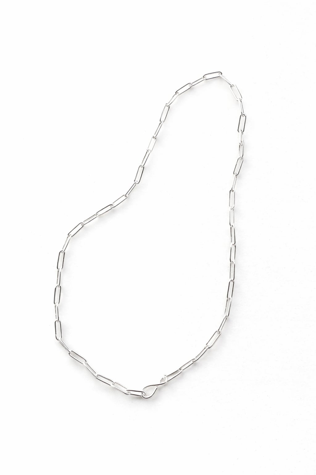洗練された印象を与える、フックチェーンネックレス。
