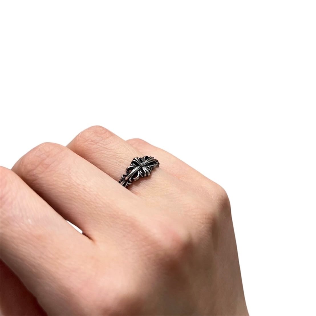 繊細な透かしデザインにクロスモチーフを落とし込んだ、存在感のあるリング。