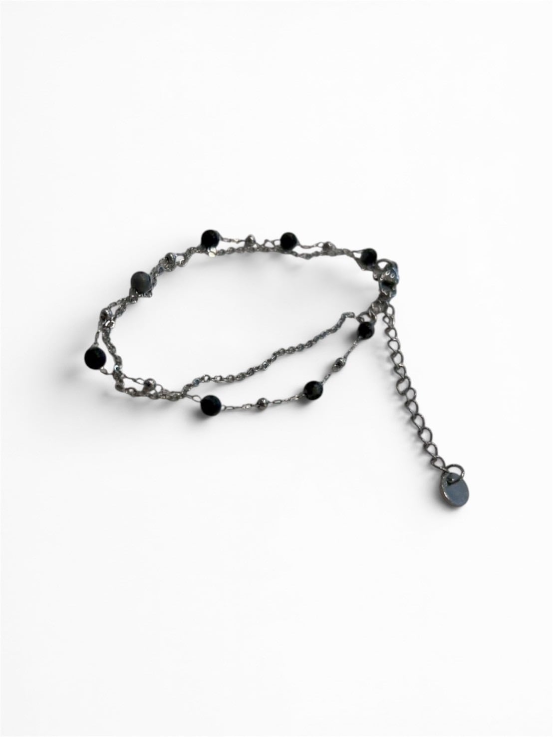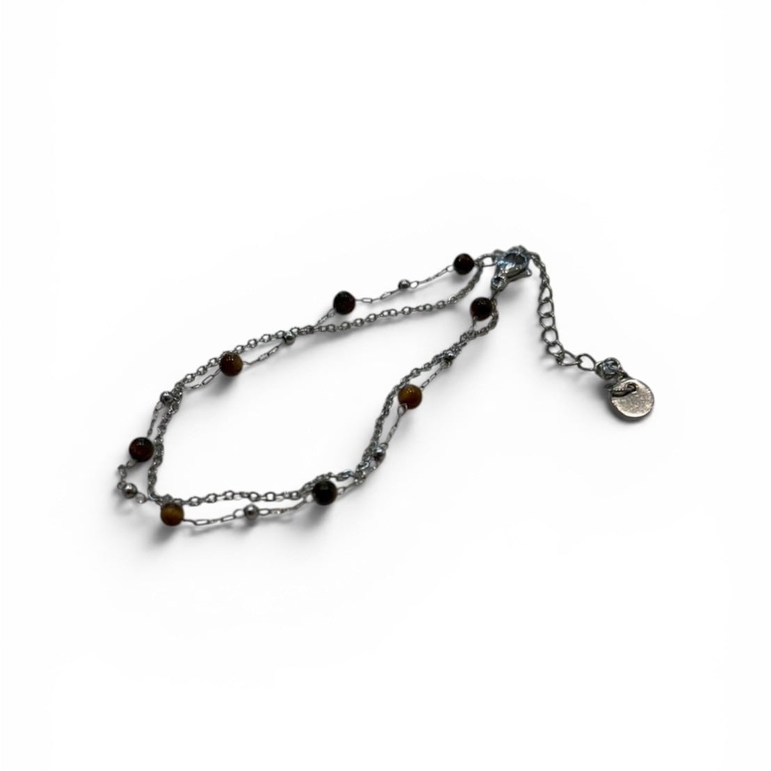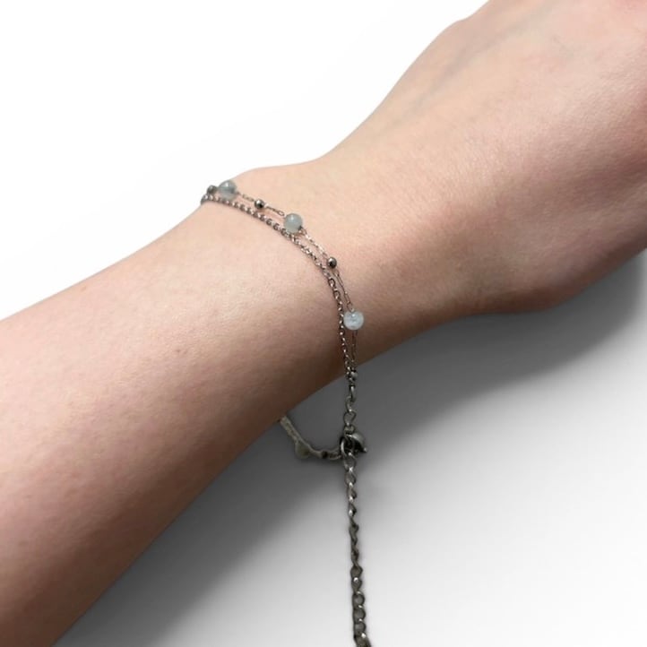繊細なチェーンに、さりげなく配置された天然石が印象的な2連デザインのブレスレット。