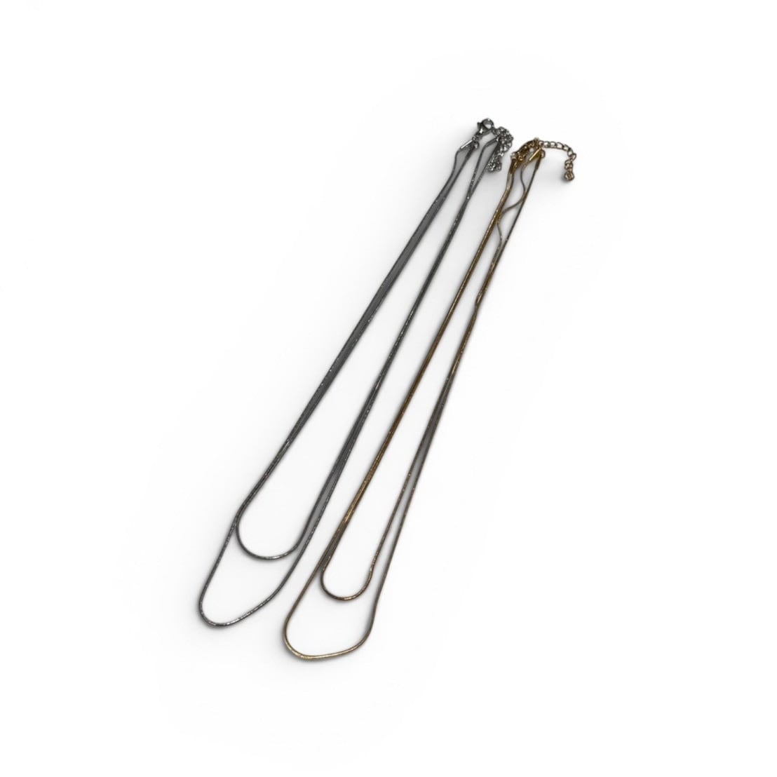滑らかな質感が特徴のスネークチェーンを重ねた、ミニマルな2連ネックレス。